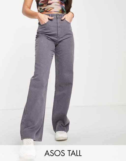 ASOS DESIGN Tall - Dad broek met wijde pijpen in grijs met wassing