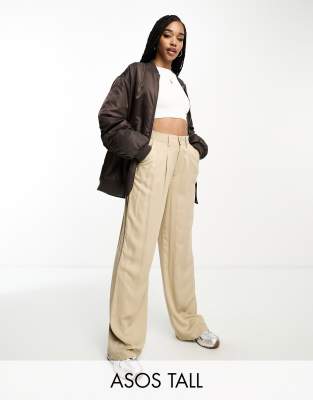 ASOS DESIGN Tall - Dad broek met wijde pijpen in taupe
