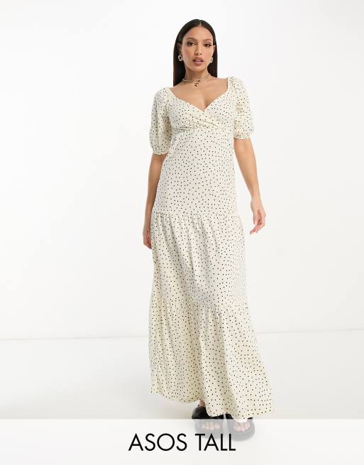 ASOS DESIGN Tall - Gelaagde midi jurk met korte mouwen en overslag in wit met stippen