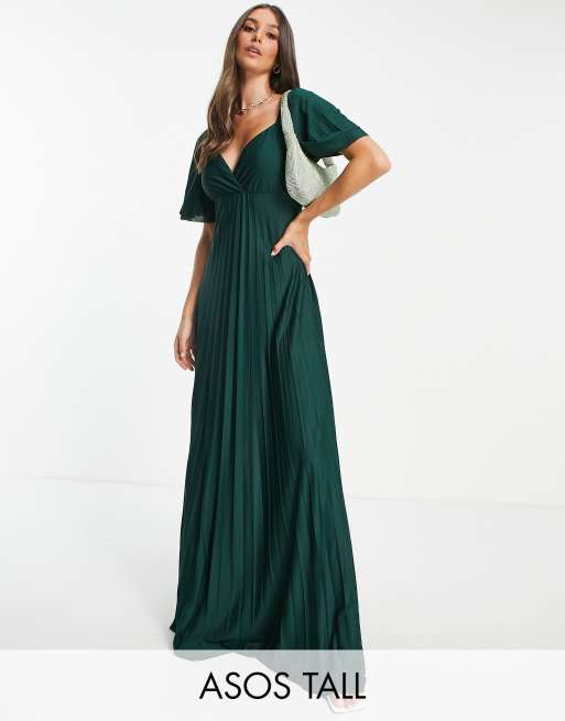 ASOS DESIGN Tall - Geplooide lange jurk met gedraaide achterkant en kapmouwen in groen