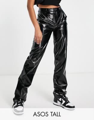 ASOS DESIGN Tall - Hoogglanzende broek met rechte pijpen van gebarsten vinyl in zwart