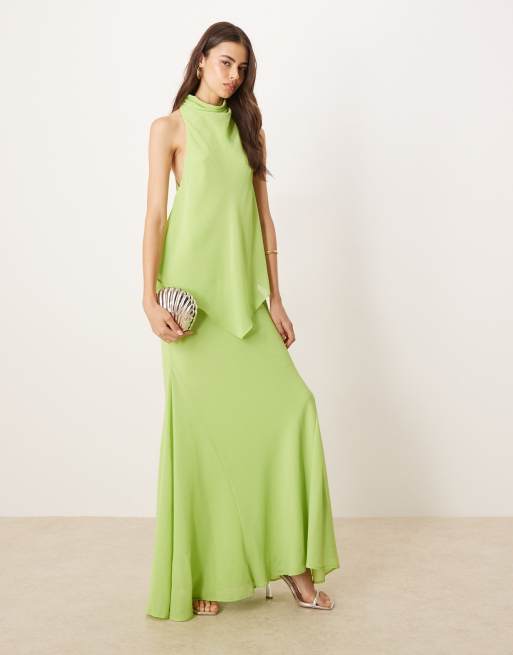 ASOS DESIGN Tall - Hoogsluitende maxi jurk van gelaagd chiffon in limoengroen