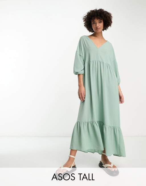 ASOS DESIGN Tall - Nonchalante aangerimpelde midi-jurk in licht saliegroen