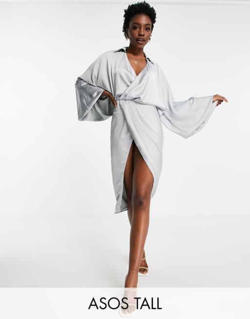 ASOS DESIGN Tall - Overhemdjurk van satijn met blousonmouwen en open achterkant in