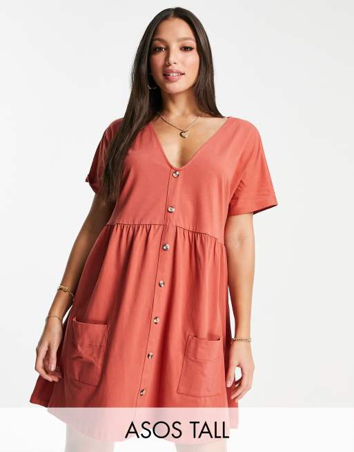 ASOS DESIGN Tall - Oversized mini smockjurk met knoopsluiting in gemberkleur
