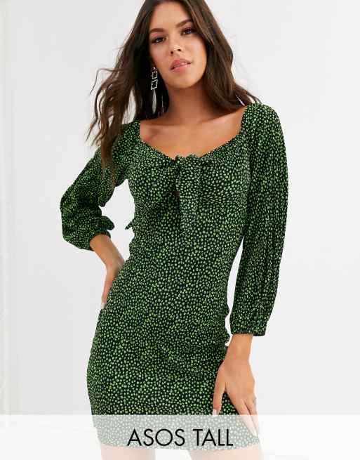 ASOS DESIGN Tall - Plissé mini-jurk met geknoopte voorkant en fijne print