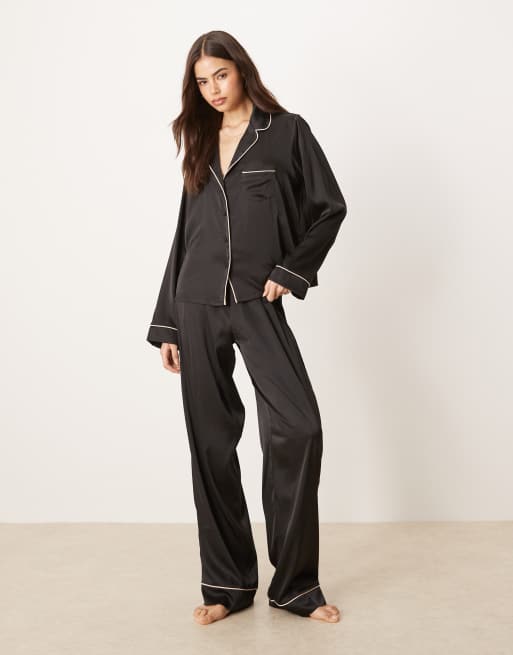 ASOS DESIGN Tall - Satijnen pyjama in zwart