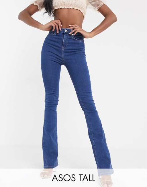 ASOS DESIGN Tall - 'Sculpt me' - Wijd uitlopende jeans in indigo met wassing