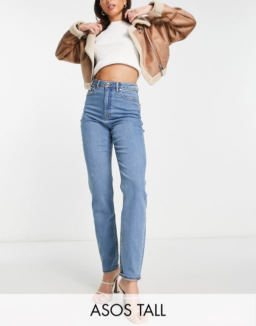 ASOS DESIGN Tall - Smalle mom jeans in middenblauw
