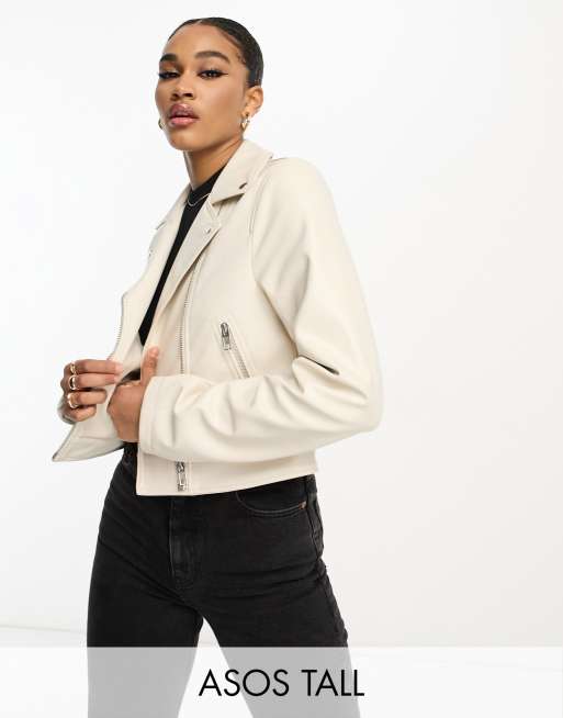 ASOS DESIGN Tall - Ultiem bikerjack van imitatieleer in ecru