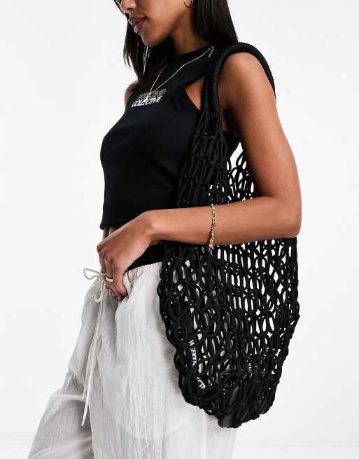 ASOS Weekend Collective - Shopper tas van elastisch net in zwart