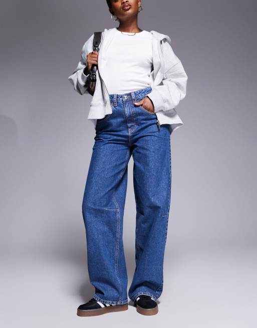 Weekend Collective - Baggy jeans met wijde ronde pijpen in middenblauw met wassing