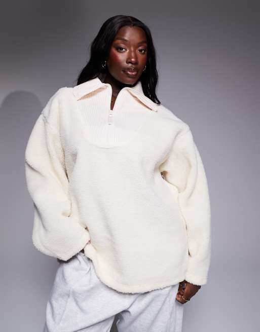 Weekend Collective Curve - Trui van borg met geribbelde hals, ritssluiting en print in reliëf op de rug in crème