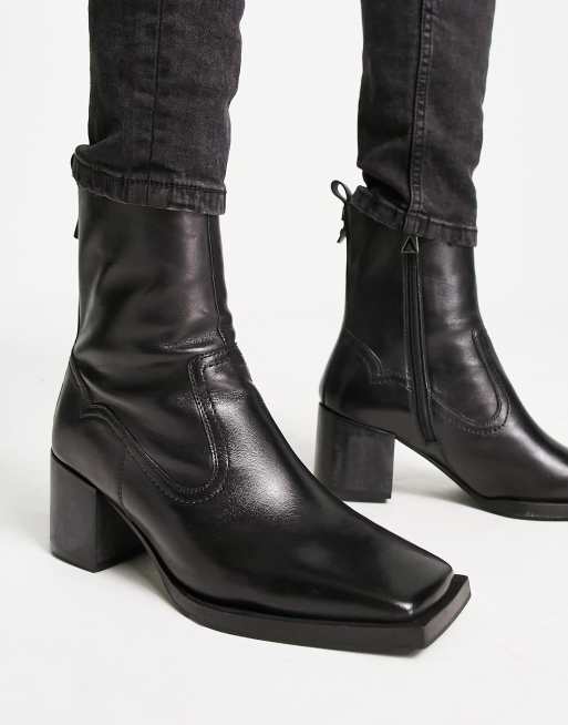 ASRA - Marlin - Laarzen van leer met hak en vierkante neus in zwart