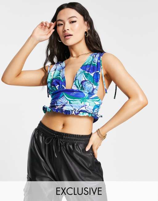 ASYOU - Diepuitgesneden top met gerimpelde taille en print in multi, deel van co-ord set