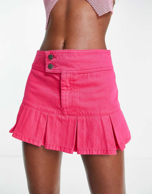 ASYOU - Geplooide mini rok van denim met verlaagde taille in roze