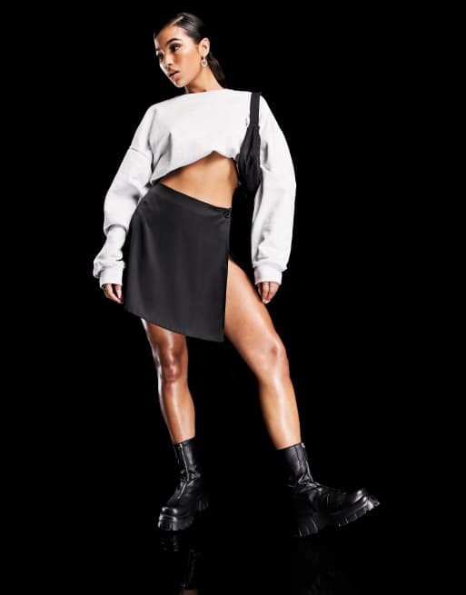 ASYOU - Korte minirok met zijsplit in zwart