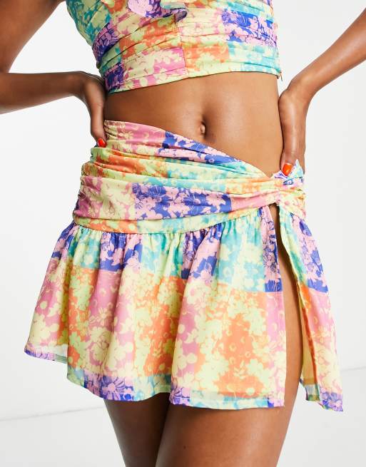 ASYOU - Rara rok met split op de voorkant met aquarel bloemenprint, deel van co-ord set