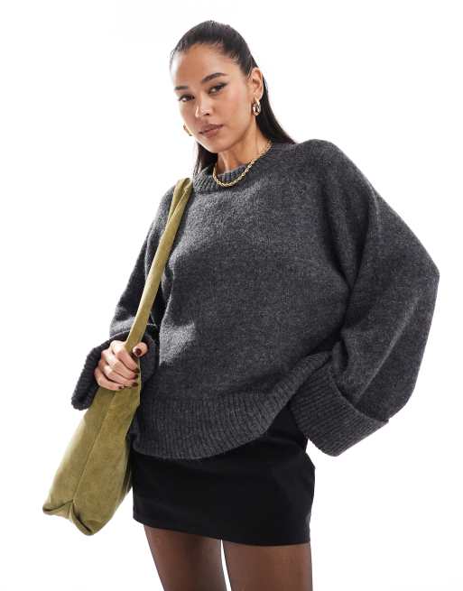 Vero Moda - Aware - Trui met wijde mouwen in gemêleerd donkergrijs
