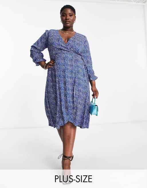 AX Paris Plus - Midi jurk met overslag en stippen in blauw