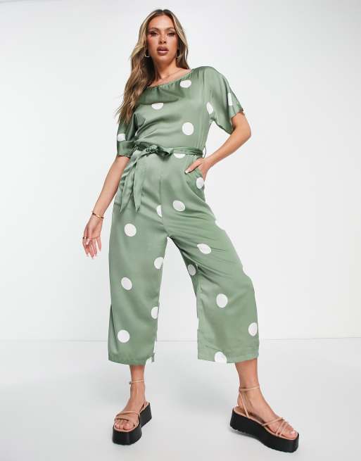 AX Paris - Jumpsuit met korte mouwen in saliegroen met stippen