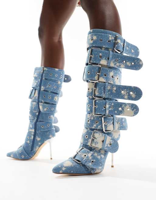 Azalea Wang - Sedna - Knielaarzen met gespen in denim