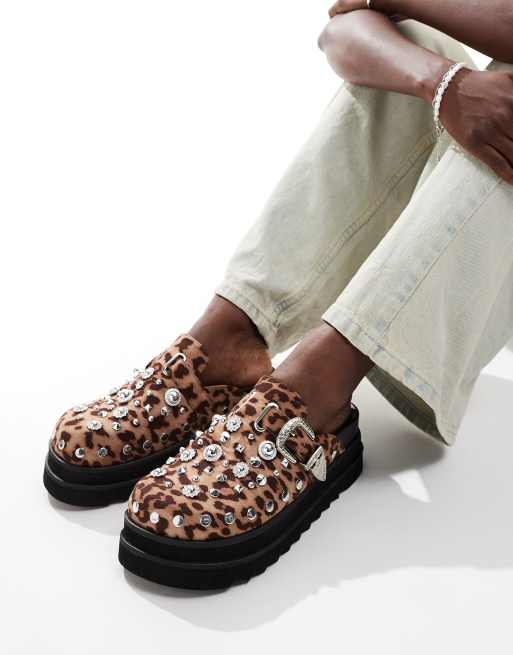 Azalea Wang - Swiftly - Platte westernschoenen met hardwaredetails in luipaardprint