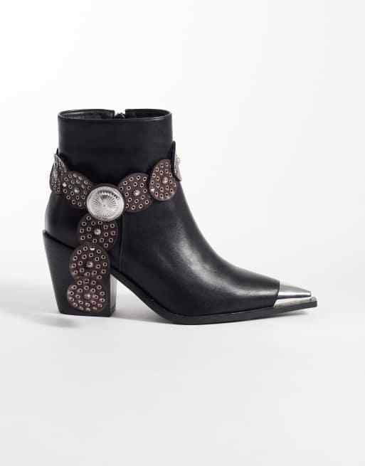 Azalea Wang - Verrill - Westernlaarzen met riem met studs in zwart