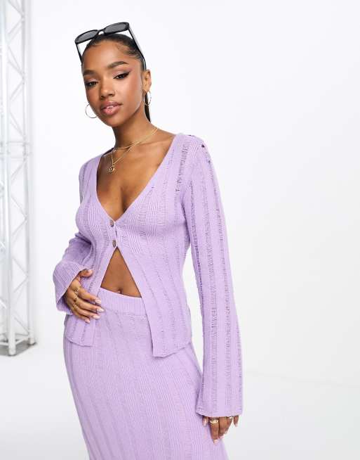 Bailey Rose - Geribbelde gebreid vest met knopen aan de voorkant in lila, deel van co-ord set