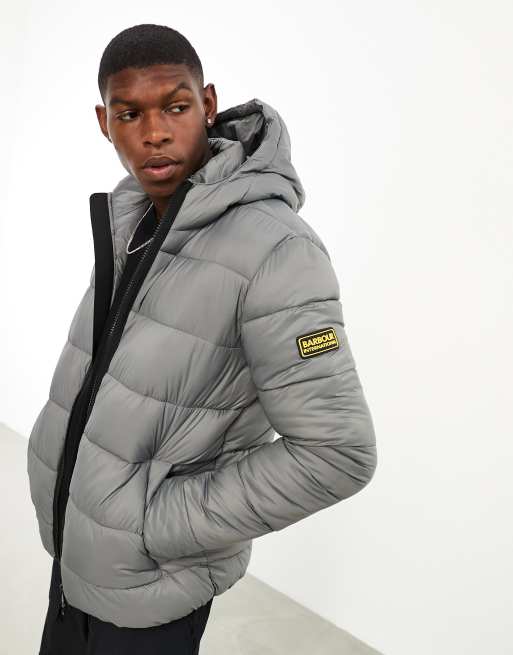 Barbour International - Bobber - Gewatteerd jack met rits en capuchon in grijs