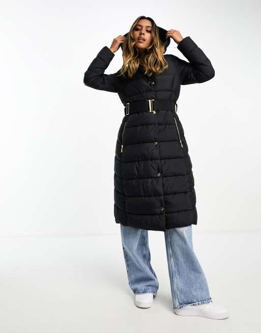 Barbour International - Track Line - Gewatteerd lang jack met capuchon in zwart