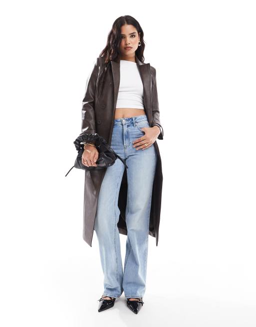 Bardot - Trenchcoat van imitatieleer in donker chocoladebruin