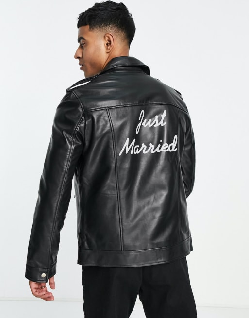Barney's Originals - Bride & Groom - Leren jack met 'Just married' print
