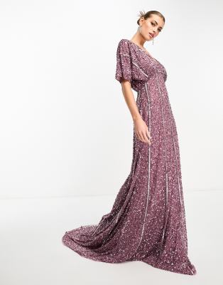 Beauut - Maxi jurk met versiering en V-hals in bordeauxrood