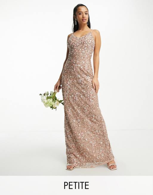 Beauut Petite - Bruidsmeisjes - Maxi jurk met versiering van bloemenborduursels in taupe