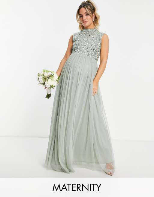 Beauut - Zwangerschapskleding - Bruidsmeisjes - 2-in-1 maxi jurk met versiering en volle rok van tule in saliegroen