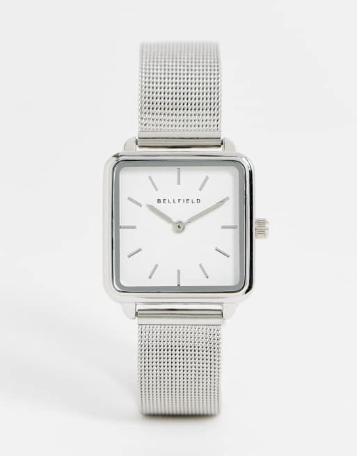 Bellfield - Horloge van roestvrij staal met mesh band en vierkante wijzerplaat in zilver
