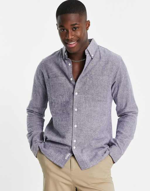 Bellfield - Overhemd van geborsteld flanel met visgraatmotief in lichtblauw