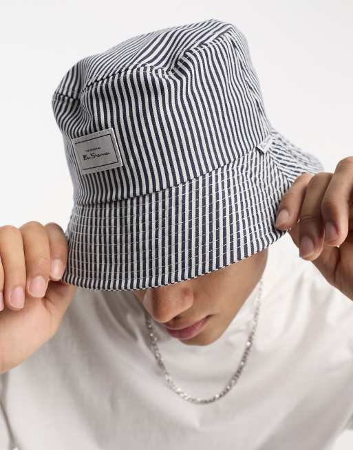 Ben Sherman - Gestreepte bucket hat met logo in marineblauw