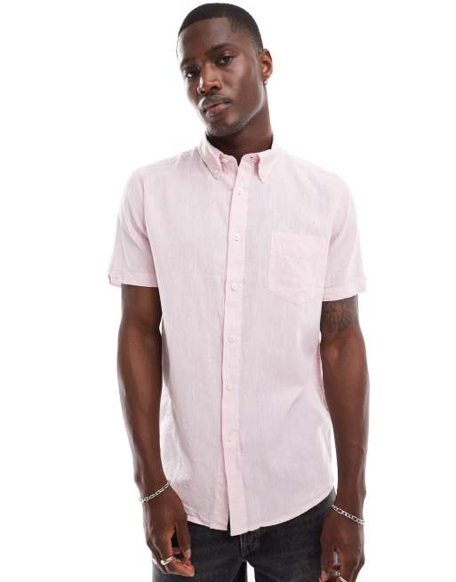 Ben Sherman - Linnen overhemd met korte mouwen in roze