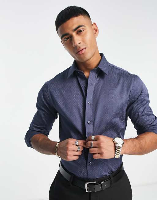 Ben Sherman - Overhemd met mini stippen in marineblauw
