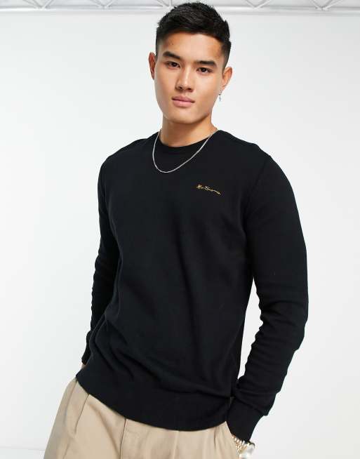 Ben Sherman - Trui met ronde hals en gestikt detail in zwart
