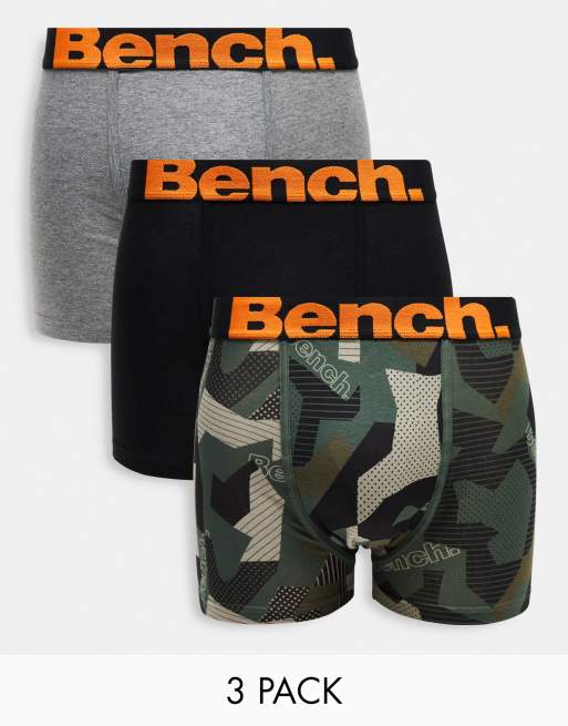 Bench - Set van 3 boxershorts met logo op de tailleband in camouflageprint, gemêleerd antraciet en zwart