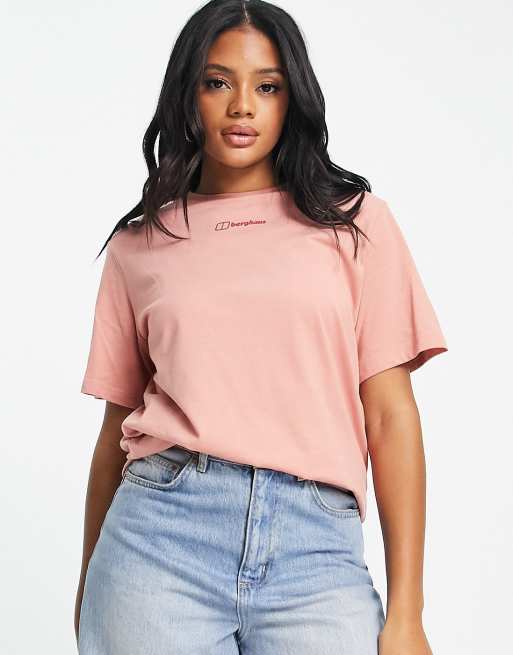 Berghaus - Katoenen boyfriend T-shirt met logo in het midden in roze