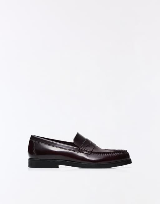 Bershka - Aangerimpelde loafers in bordeauxrood