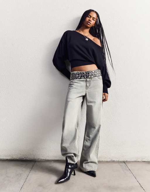 Bershka - Baggy jeans in lichtgrijs