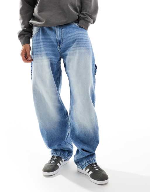 Bershka - Baggy timmermansbroek met mid-wash in blauw