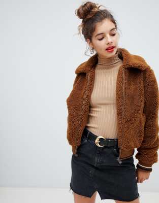 Bershka - Bomberjack met bont in bruin