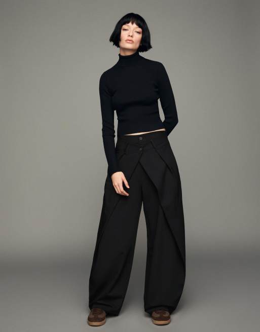Bershka - Broek met ballonpijpen en plooien in zwart