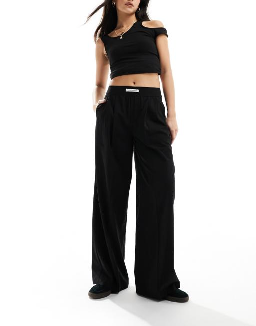 Bershka - Broek met wijde pijpen en brede tailleband in zwart
